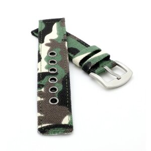 Canvas Textil Uhrenarmband Modell Terra-Camouflage grün 22 mm, wasserfest