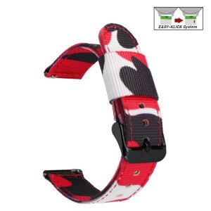 Easy-Klick Camouflage Canvas-Nylon Uhrenarmband Modell Jumper-P rot-mehrfarbig 22 mm