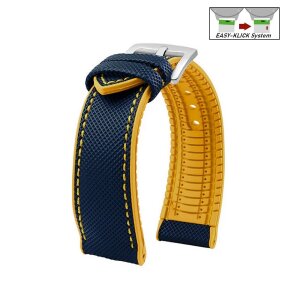 Easy-Klick Premium Hybrid Silikon-Nylon Uhrenarmband Modell Isidor blau-gelb 22 mm