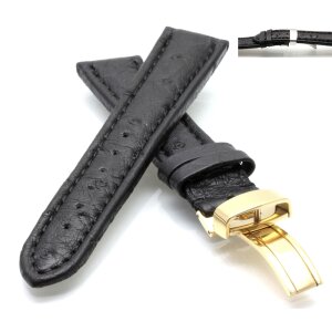 Echt Strauß Uhrenband Modell Liberty-FS schwarz 20 mm Faltschließe