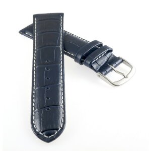 Feines Alligator Leder Uhrenarmband Modell Lausanne-NL navyblau-WN 22 mm