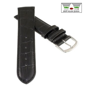 Feines Easy-Klick Alligator Leder Uhrenarmband Modell Lausanne-NL schwarz-TiT 15 mm