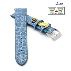 Fluco Easy-Klick Limited-Edition echt Krokodil Uhrenarmband Modell Burma hell-blau 20 mm