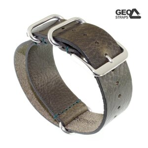 GEO-Straps Nato Leder Durchzugs-Uhrenarmband Modell Ponderosa khaki-grün 22 mm Nato Strap
