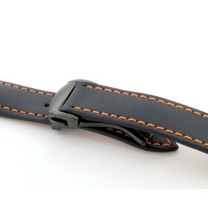 High-End Faltschließe Edelstahl PVD-schwarz poliert Modell Mega 20 mm, komp. Omega