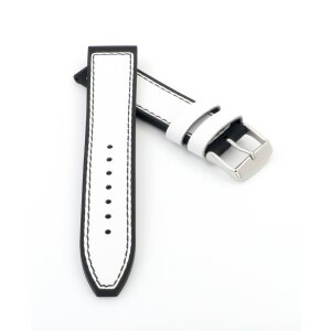 Hybrid Silikon-Leder Uhrenarmband Modell Lesi weiß-schwarz 20 mm