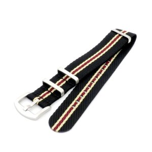 Premium Nato Nylon Uhrenarmband Modell Quantum schwarz-beige-rot 22 mm