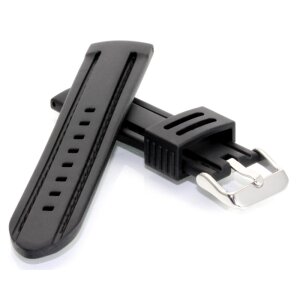 Silikon Uhrenarmband Modell Rosanna schwarz - schwarze Naht DS 24 mm